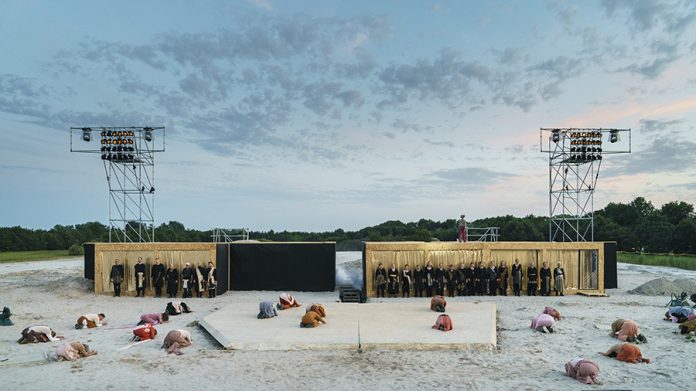 In August and September, Zummerbühne Groningen (Groningen Summer Theatre) presented ‘Gronieken’, a musical theatre production staged at a sand depot in Meerstad. The unusual open-air location posed special challenges for both the crew and the equipment, with wireless audio transmission being provided by a Sennheiser Spectera ecosystem with two Base Stations, 49 SEK bodypacks and eight DAD antennas.